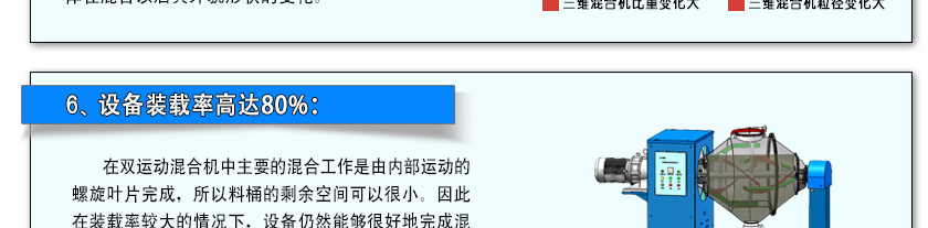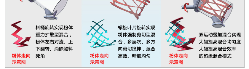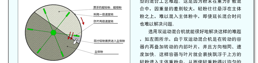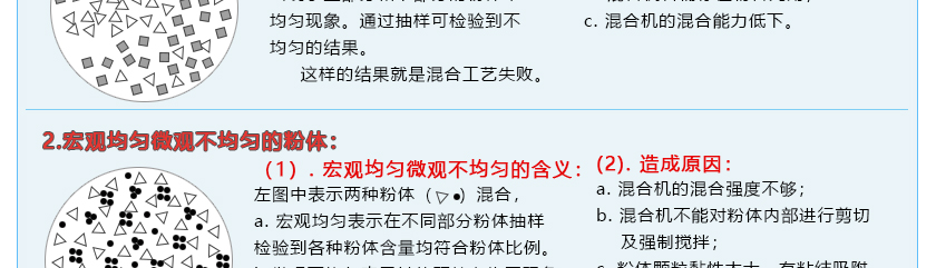 注:當(dāng)物料的批量遠(yuǎn)小于料桶的容積時(小于料桶容積的25%)由于物料很少,粉體之間的粉壓很低,混合難以