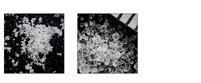上圖左是800目的面粉,上圖右是20目的食鹽顆粒。兩者粒徑比重差別都很大,屬于差異化混合,所以把這兩種粉末均勻混合在一起比較困難。